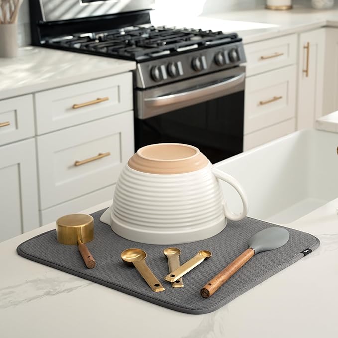 Dish Drying Mat, Highly Absorbent Microfiber Kitchen Counter Mat, Dish Drying Pad for Dishes, Utensils, Pots and Pans, Large 16" x 18", Charcoal